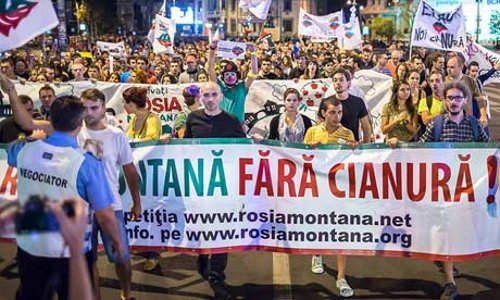 means, in Romanian, "Rosia Montana without cyanide!")