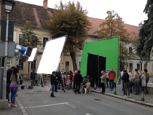 A movie crew was filming,