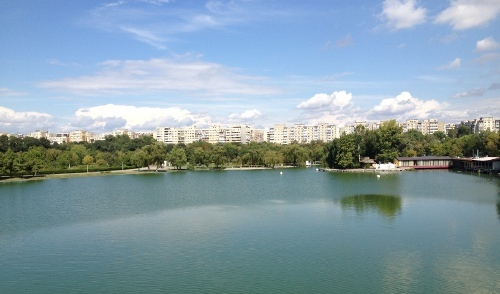bridge over Lake Tineretului along the way, and looking northward from that